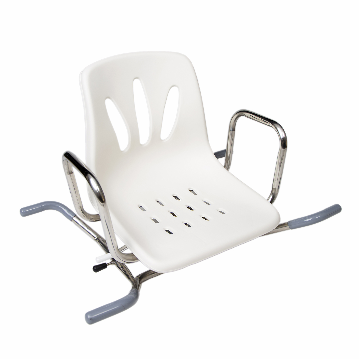 Fabricado en acero inoxidable. No requiere obras ni mantenimiento y se puede retirar para dejar libre la bañera. Lleva reposabrazos integrados y una palanca con 4 posiciones que puede bloquear el giro del asiento. El diseño del asiento impide deslizamientos y evacua el agua. Dos tornillos acolchados, lo aseguran en el interior de la bañera.