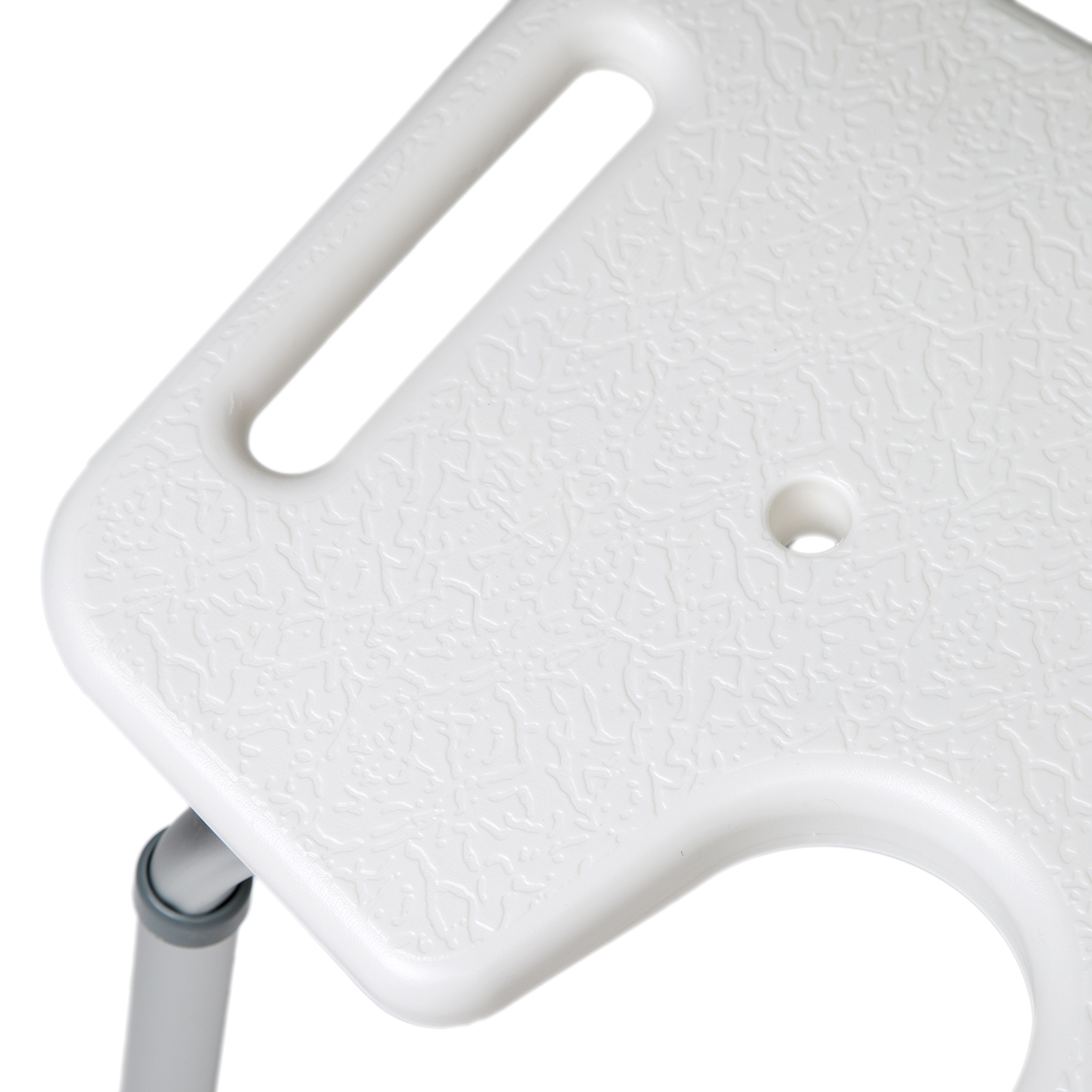 - Superficie rugosa del asiento para evitar deslizamientos del usuario, así como facilitar el desagüe.