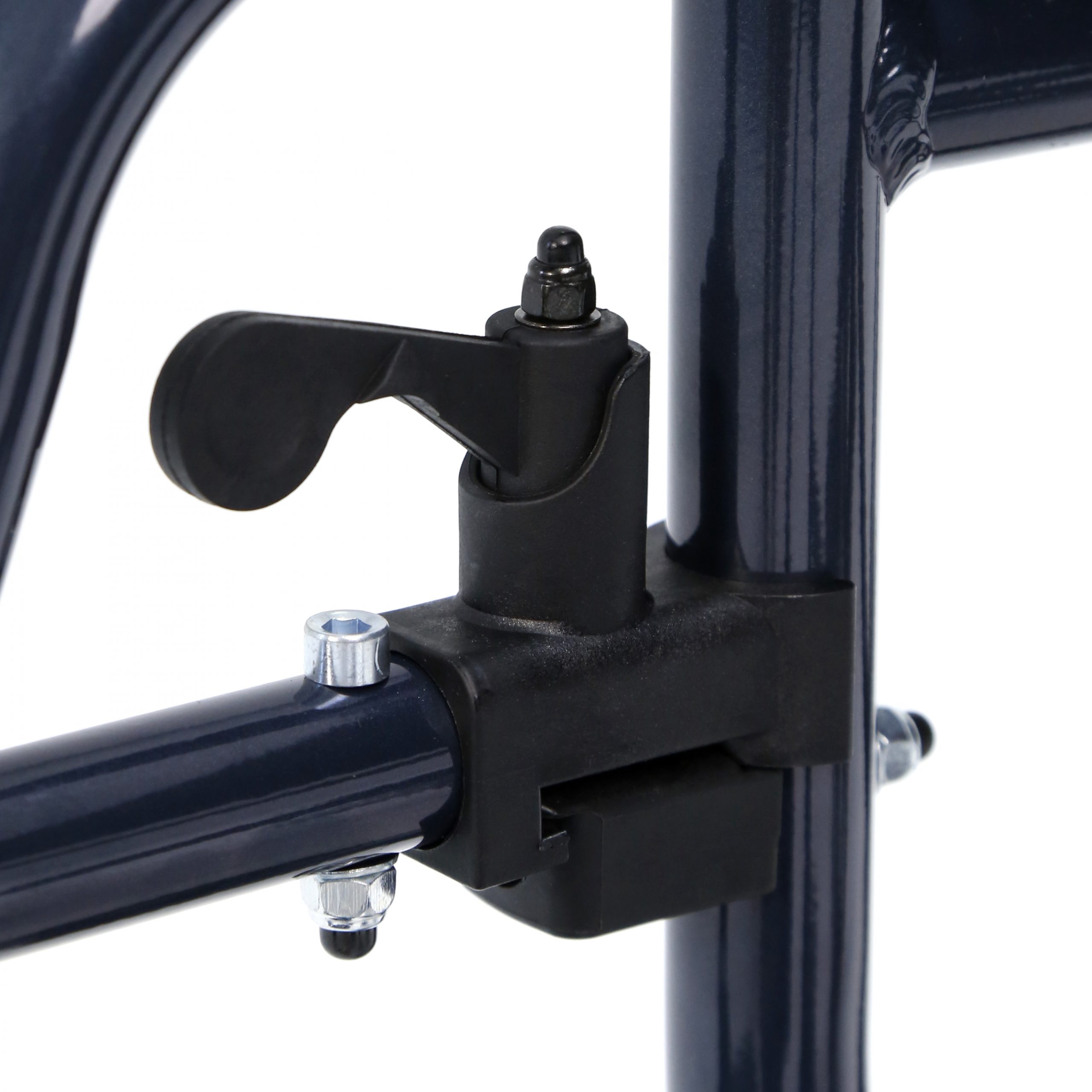 - Reposapiés abatible hacia dentro y hacia fuera, desmontable y regulable en altura.