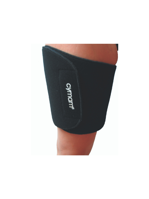 Soporte térmico para patología muscular en el muslo: contracturas, roturas fibrilares, etc. Diseñada íntegramente en neopreno, se ajusta mediante velcro . Talla única.