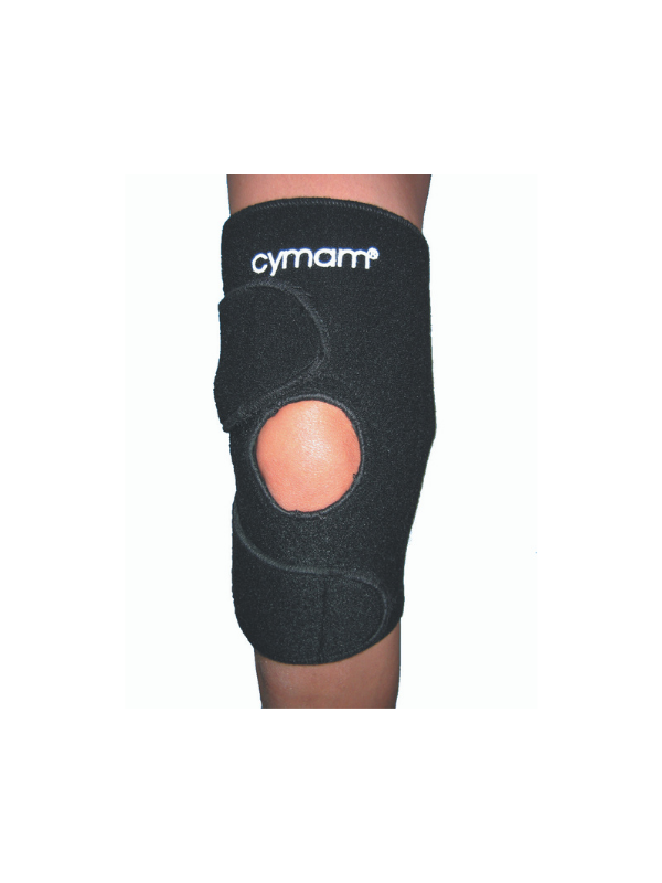 Diseñada integramente en neopreno, se ajusta mediante velcro en parte inferior y superior, con orificio rotuliano y cuatro flejes de plástico para dar estabilidad. Talla única.