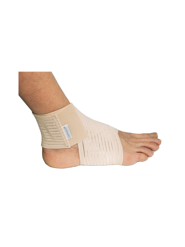 Diseñada integramente en neopreno, se ajusta mediante y esta provista de una banda elástica que permite estabilizar el tobillo. Talla única.