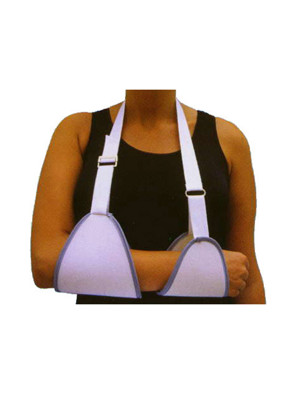 Indicado para descarga de hombro y brazo, procesos inflamatorios que requieran inmovilización, fracturas de clavícula y húmero, sujeción de brazos escayolados, esguinces y luxaciones del miembro superior. Confeccionado en foam, cubierto de velour por ambas caras, completamente ribeteado con cinta de nylon uniendo las dos piezas. La función básica del cabestrillo es la de mantener el miembro superior en una posición determinada, la zona cervical es la que debe soportar el peso del brazo a través de la cinta de suspensión.