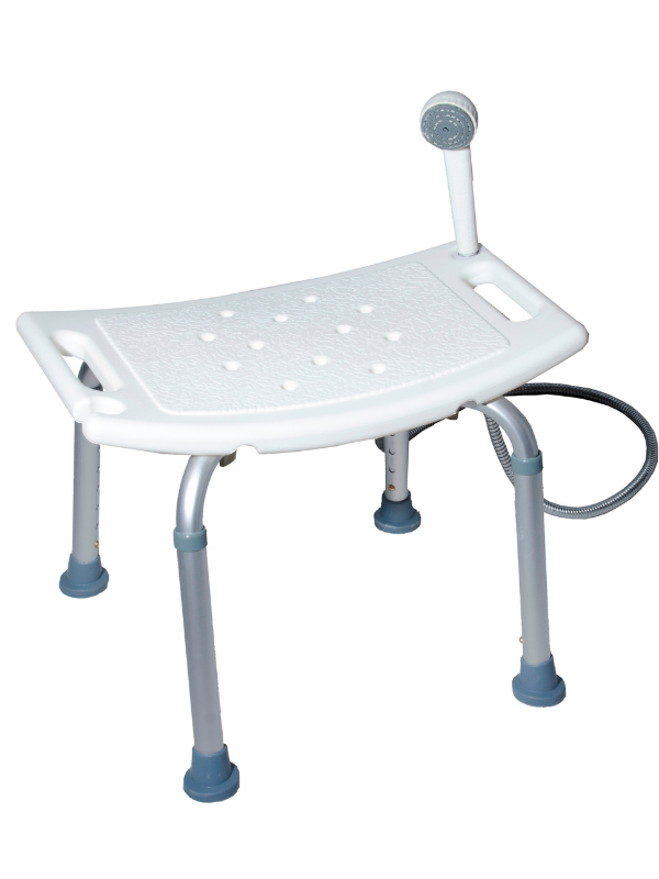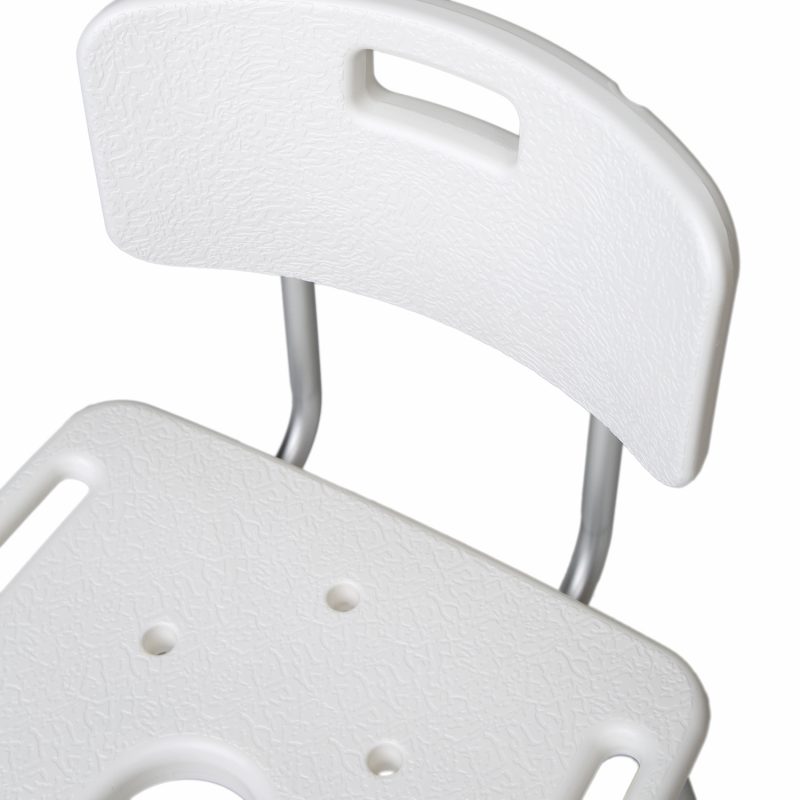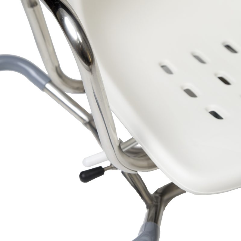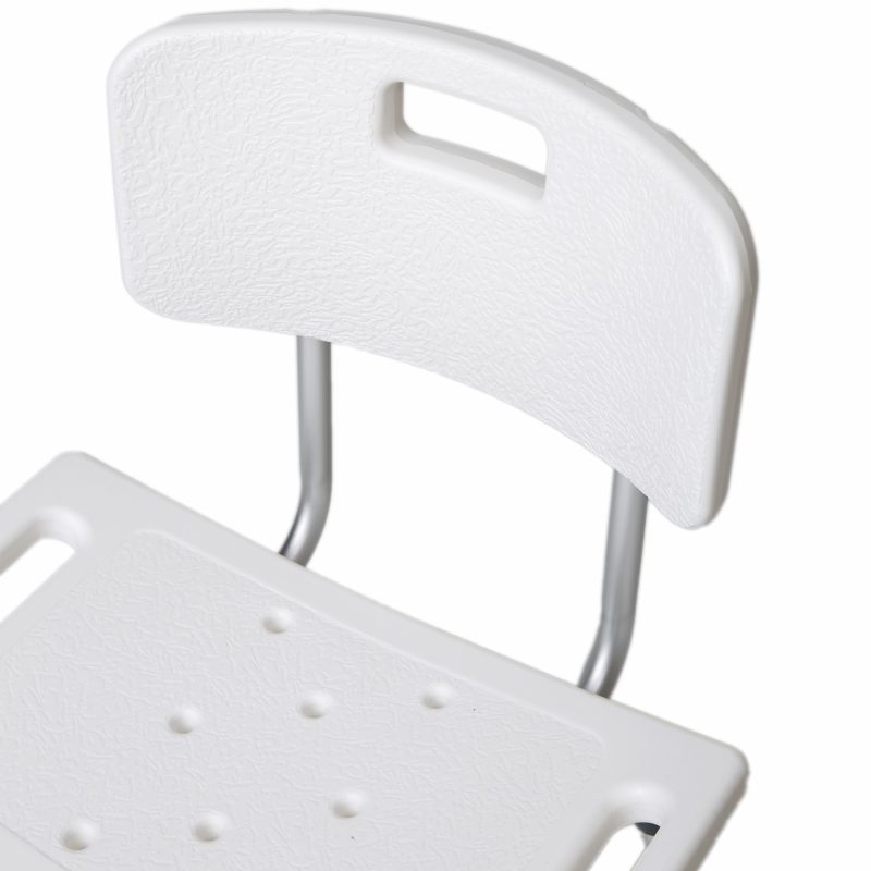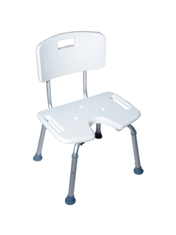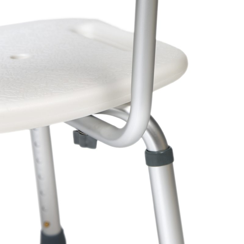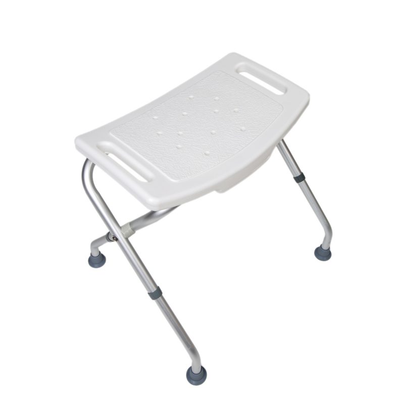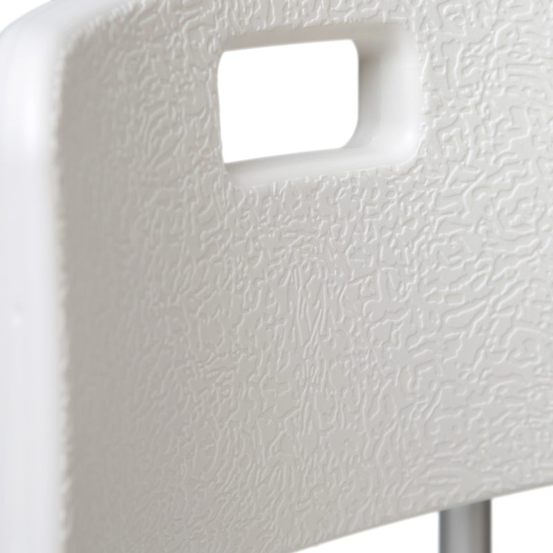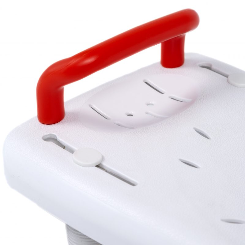 Realizada en aluminio y PVC sanitario, está diseñada para soportar un peso máximo de 100 Kg. Gracias a sus ruedas, tanto delanteras como traseras de 130 mm y a su estructura de aluminio, permite largos desplazamientos desde la habitación hasta el baño. Destaca por su ligereza, maniobrabilidad y plegado compacto.