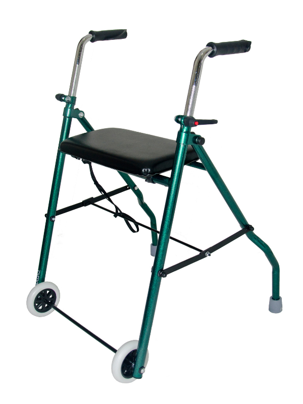 Andador muy ligero y maniobrable fabricado en acero. Fácil de plegar y guardar. Incorpora asiento acolchado y bolso porta objetos. Destaca por ser robusto y ligero. Ajuste micrométrico de la altura de las empuñaduras. Financiable por la Seguridad Social (Código: EAN010B)