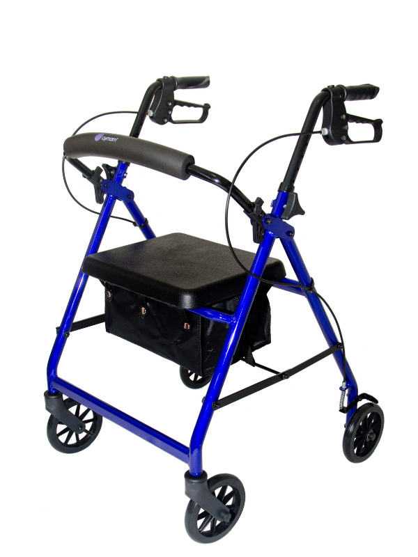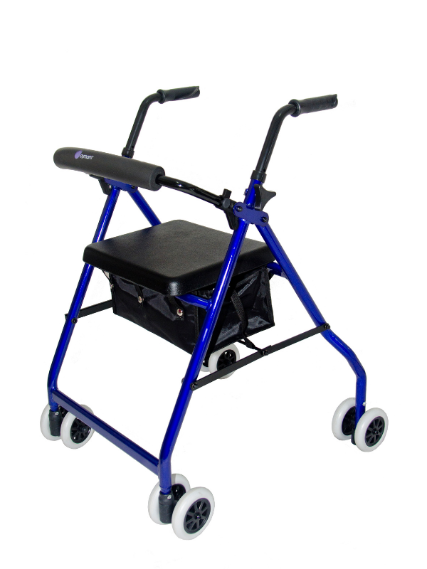 Andador muy ligero y maniobrable fabricado en aluminio. Fácil de plegar y guardar. Incorpora asiento acolchado con respaldo abatible y cesta portaobjetos. Destaca por ser robusto, ligero y la suavidad de sus acolchados. Financiable por la Seguridad Social (Código: EAN010C)